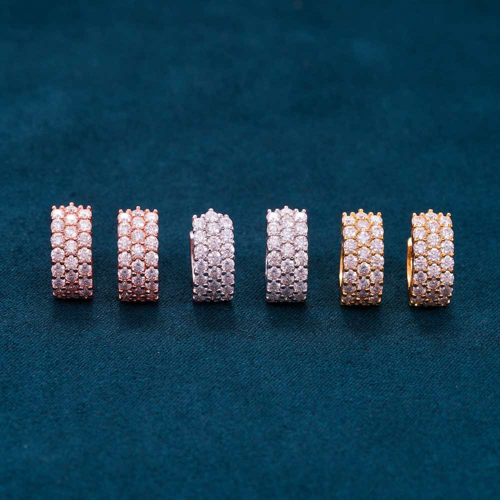 FulopJewelry’s Moissanite 3-Row Hoop Earrings shine with three layers of hand-set D-color VVS moissanite stones. Made with 925 sterling silver and finished in 14K gold, these hoops offer a brilliant, statement look.