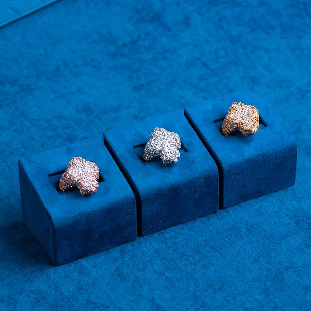 925 Sterling Silver + 14K Gold ring with VVS Moissanite stones.
