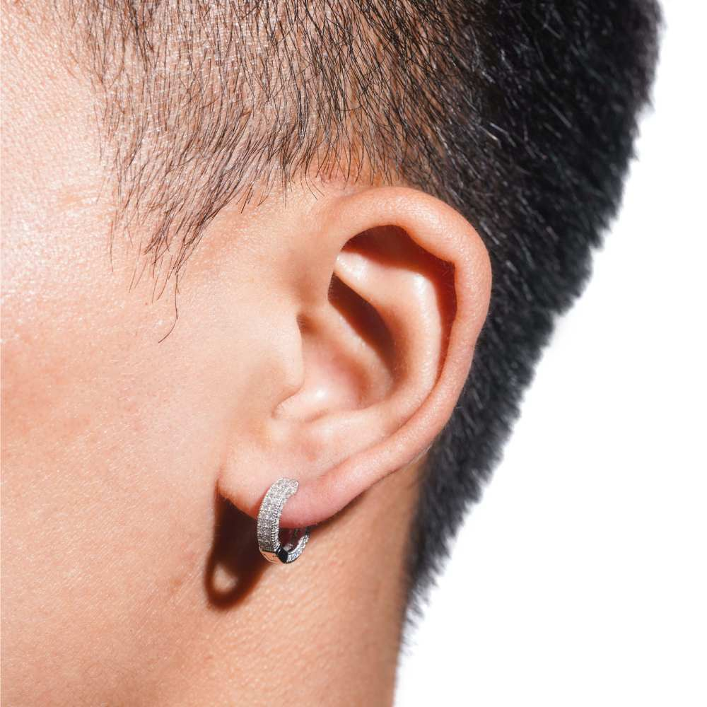 A modern hoop with brilliant detail. The Side Halo Moissanite Earrings from FulopJewelry feature emerald and round cut VVS moissanite set in a pave halo design. Finished in 14K gold over 925 silver for timeless shine.
