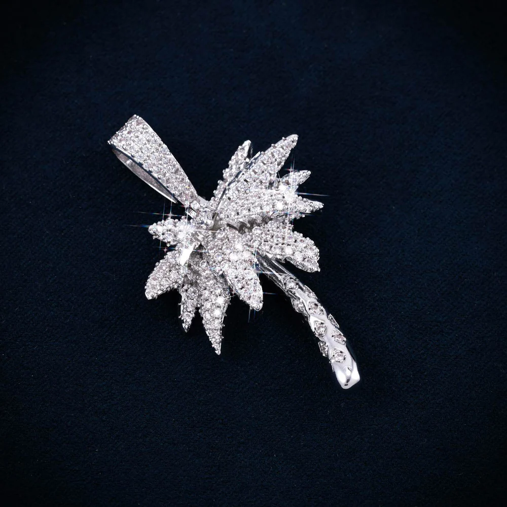 Exclusive VVS Palm Tree Pendant 14K Gold now available from FulopJewelry. Plated with 14K gold and iced out with VVS diamond simulants (CZ), this pendant measures 24×29 mm (excluding 5 mm bail). Features: PVD plated with real 14K gold; the most affordable alternative to real diamonds; designed in Houston, TX; 100% waterproof—doesn't tarnish or fade; ships with FulopJewelry guarantee; worn by 30,000+ celebrities, rappers, and pro athletes. Bail size: 5 mm (contact us if you need a different size).